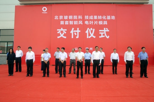 本网讯 9月8日,公司所属中材科技在山东滕州公司科技成果转化基地,举行了由北玻有限开发的首套智能风电叶片模具交付仪式。中材科技总裁刘颖、财务总监纪翔远,北玻有限董事长兼总经理赵俊山、副总经理方晓敏、总经理助理孙秀英,中材叶片、苏非院、中材锂膜、膜材料等公司领导,滕州市委、市政府、人大、政协以及各局委办、乡镇、街道主要负责人参加了交付仪式。交付仪式由滕州市市长刘文强主持。